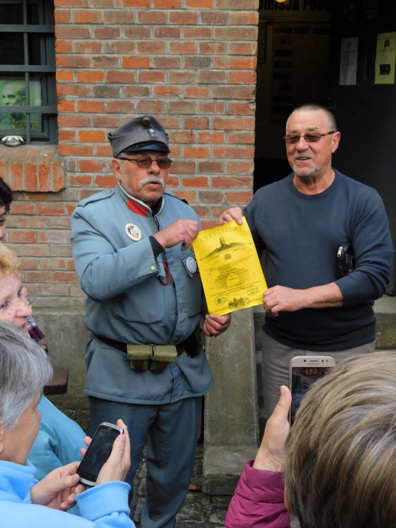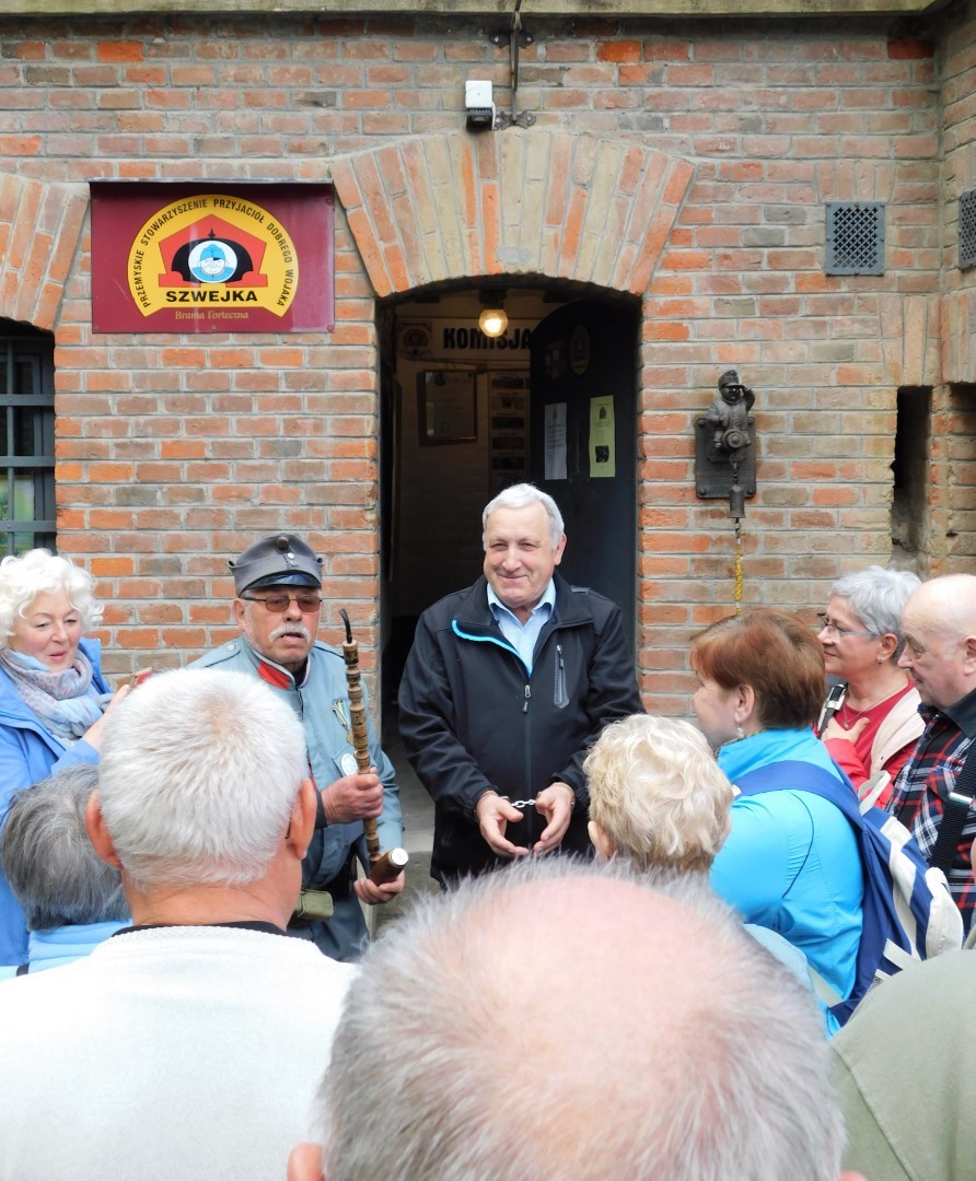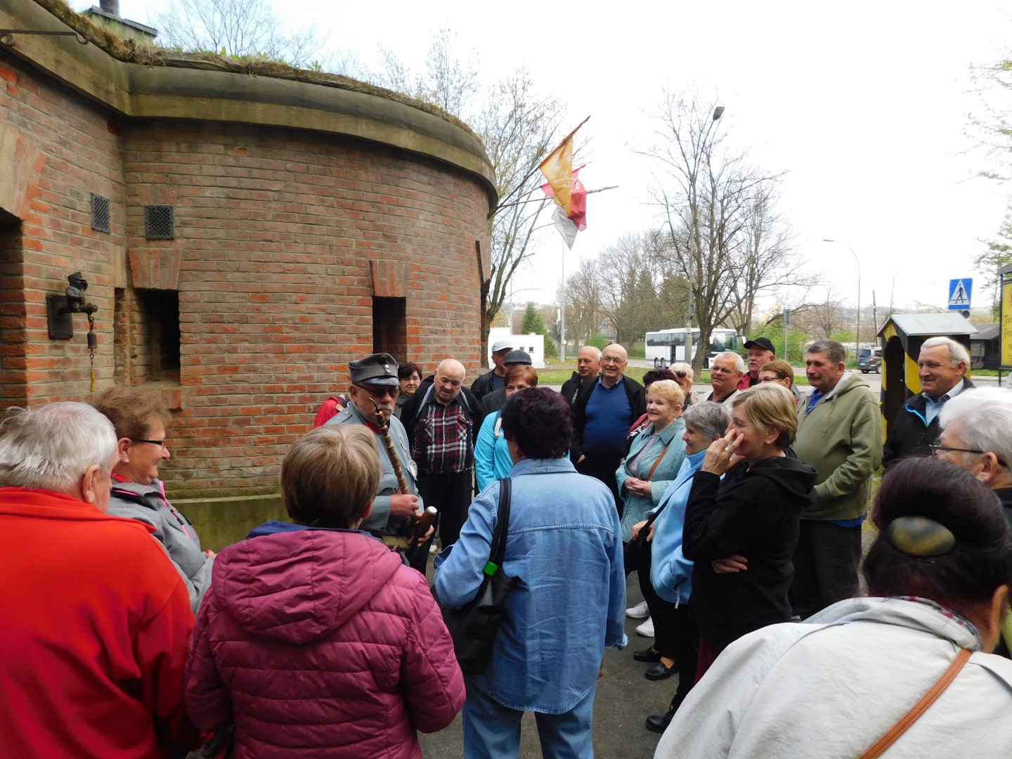 Po przyjeździe do Przemyśla powitał nas Szwejk – który po humorystycznym sprawdzeniu uczestników wyjazdu wpuścił oficjalnie grupę do miasta skąd udała się ona na wzgórze Zniesienie i Kopiec Tatarski – roztacza się tam piękna panorama ziemi przemyskiej. Kolejnym punktem były ruiny fortu Salis – Soglio w Siedliskach – który jest nietypowym fortem artyleryjskim zaprojektowanym z innowacyjnymi rozwiązaniami. Obecnie uchodzi za jeden z lepiej zachowanych fortów w całej Twierdzy Przemyśl.