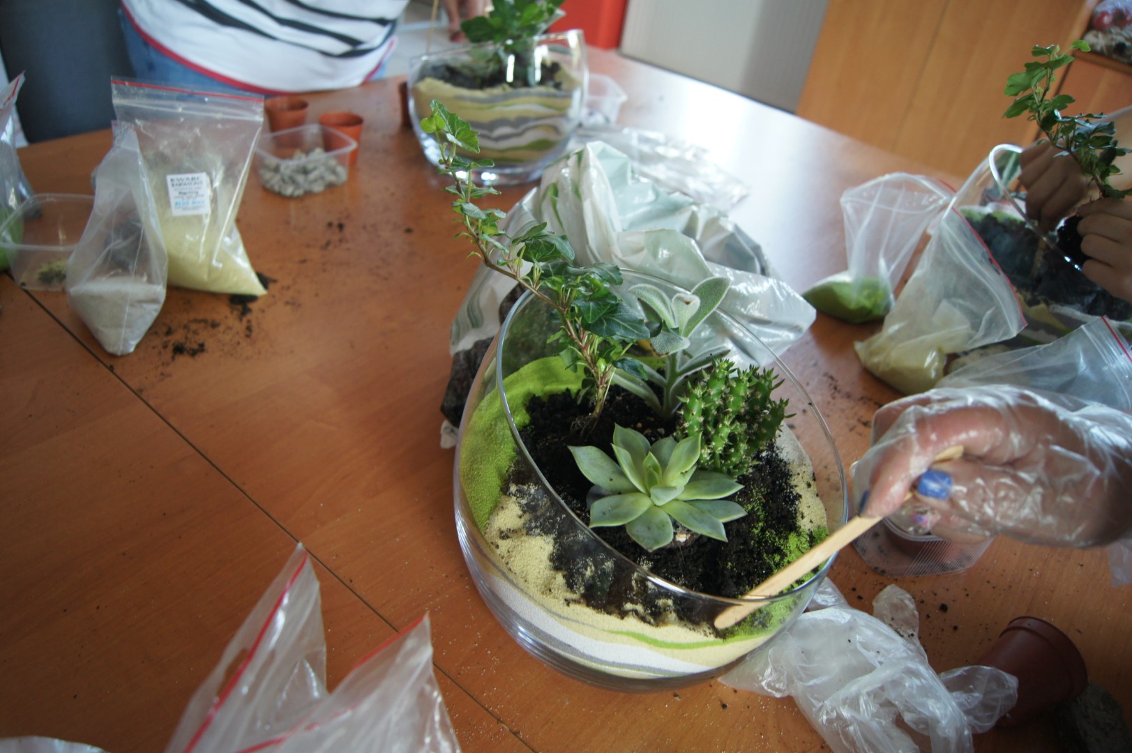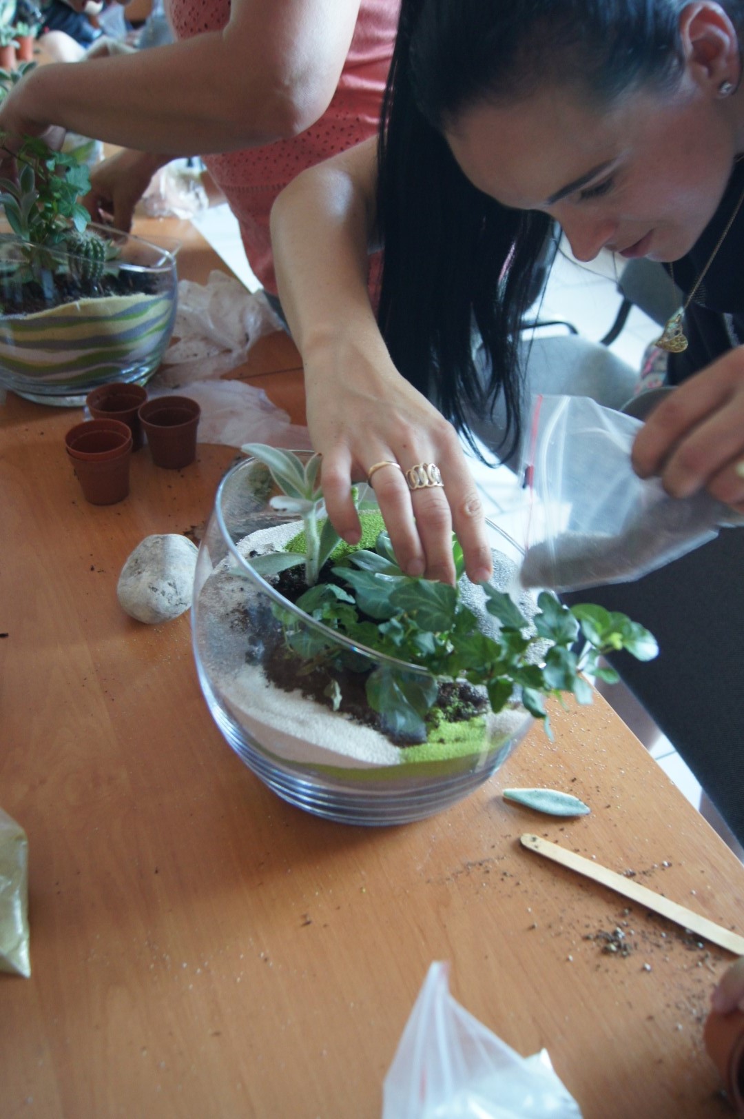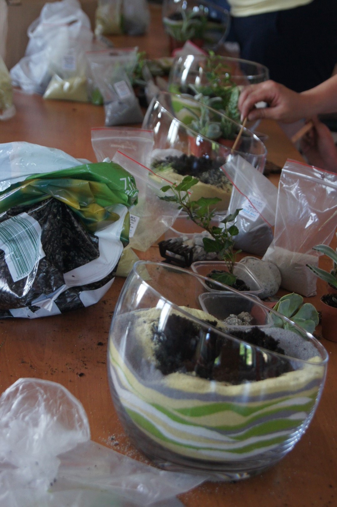 W Poniedziałek w sali Gminnego Ośrodka Kultury w Tarnowcu odbyły się warsztaty florystyczne. Tym razem uczestniczki tworzyły bardzo modne, kompozycje roślinne w szkle. Kompozycje, oprócz roślin, ozdabiane były kamyczkami, korą oraz kolorowym piaskiem. Prace wymagały sporo czasu i cierpliwości, ale efekt końcowy był na prawdę znakomity Zapraszamy do galerii!!!