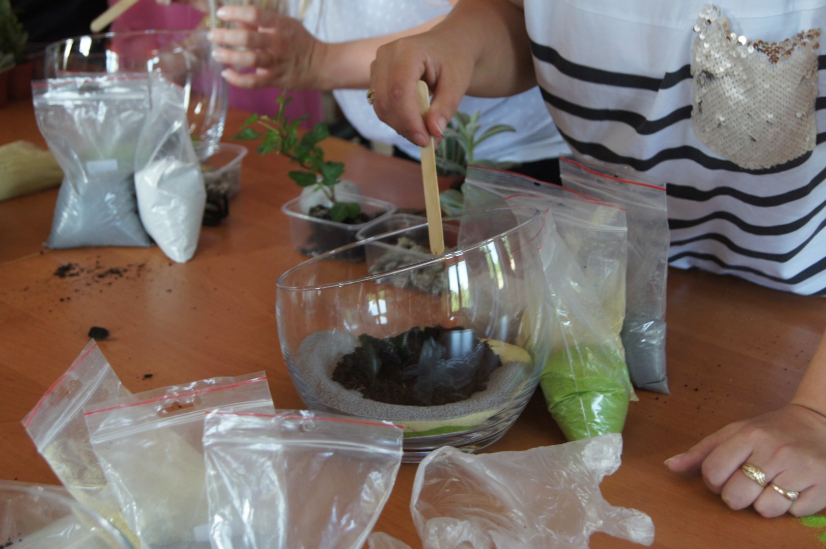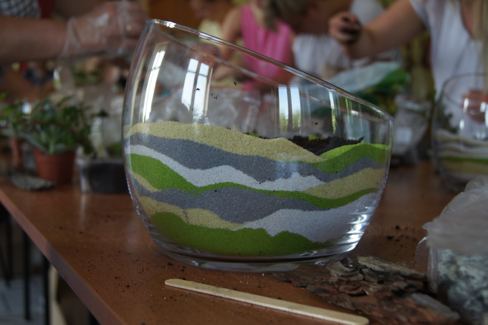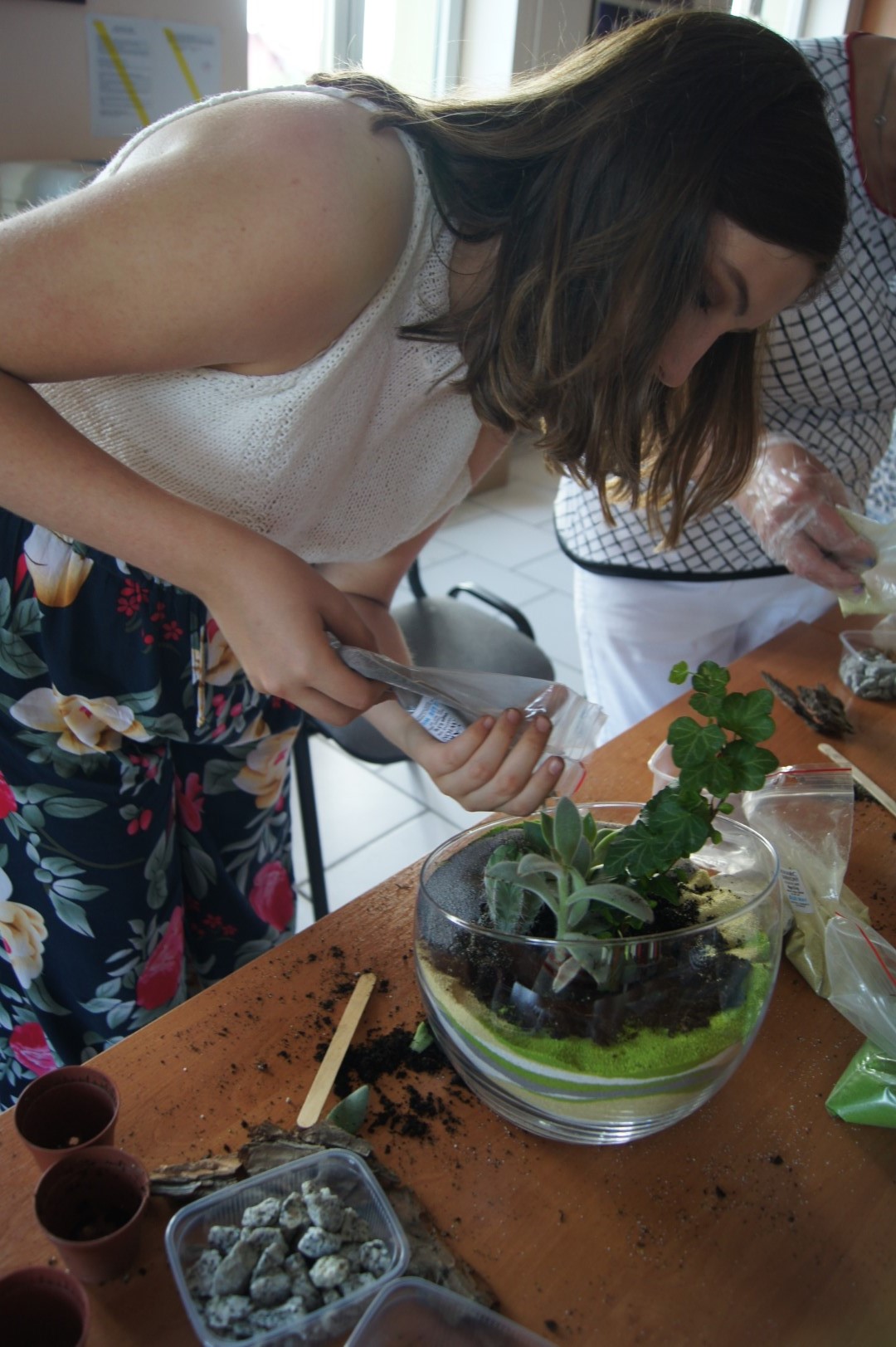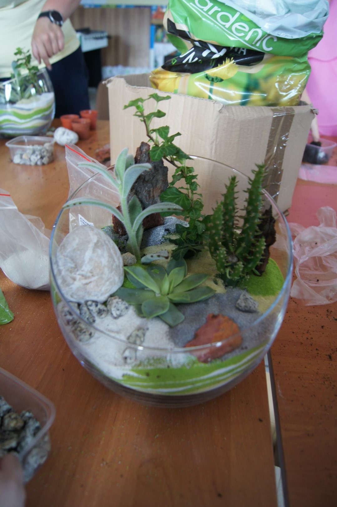 W Poniedziałek w sali Gminnego Ośrodka Kultury w Tarnowcu odbyły się warsztaty florystyczne. Tym razem uczestniczki tworzyły bardzo modne, kompozycje roślinne w szkle. Kompozycje, oprócz roślin, ozdabiane były kamyczkami, korą oraz kolorowym piaskiem. Prace wymagały sporo czasu i cierpliwości, ale efekt końcowy był na prawdę znakomity Zapraszamy do galerii!!!