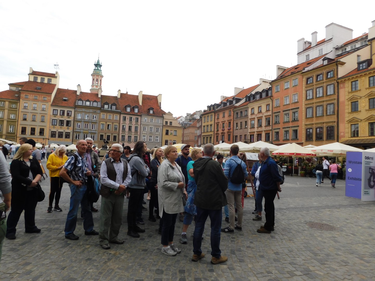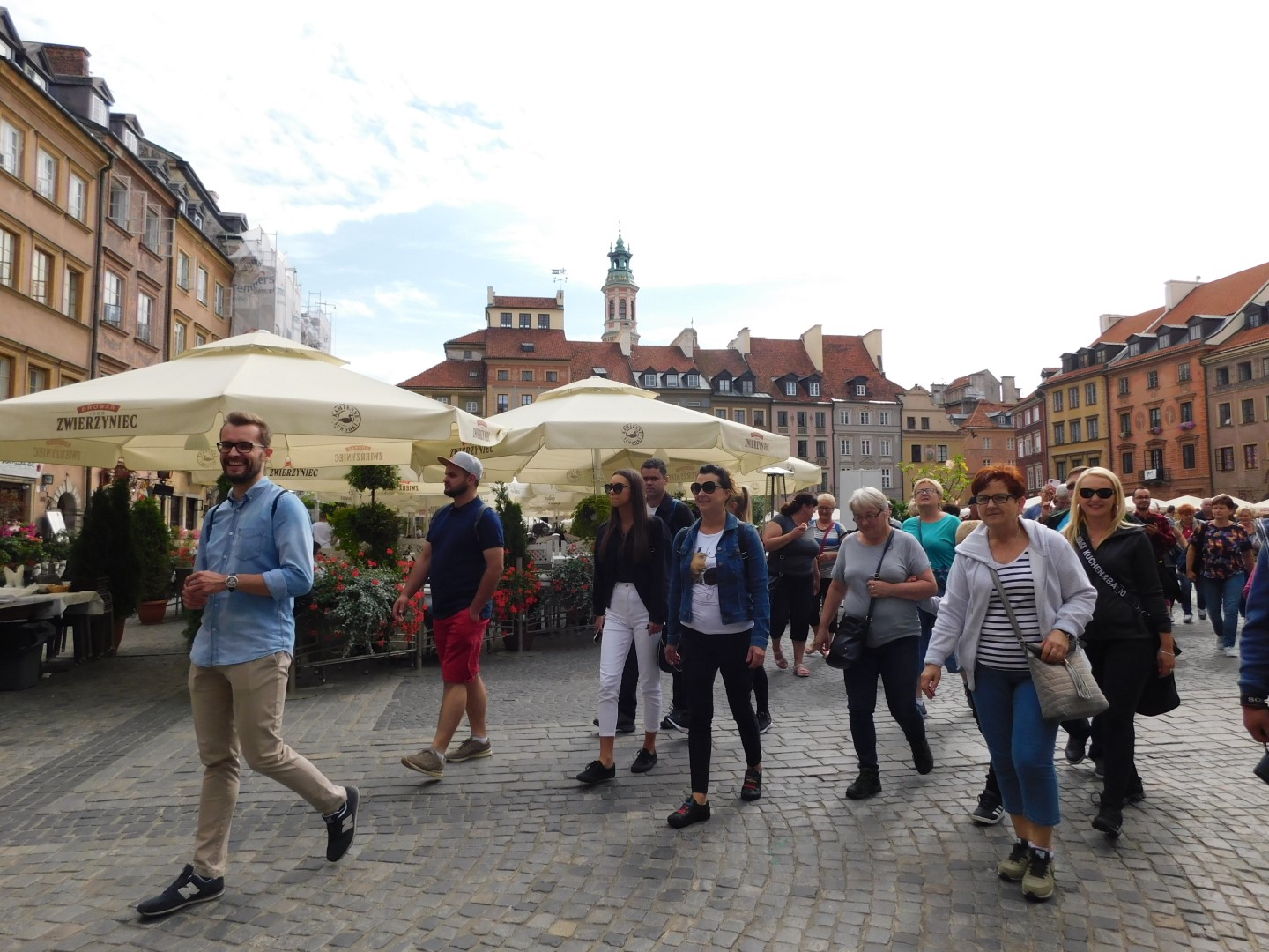 Zwiedzanie rozpoczęliśmy od Placu Zamkowego, gdzie wysłuchaliśmy historii dotyczącej Kolumny Zygmunta. Następnie odwiedziliśmy Stare Miasto z Rynkiem i Pomnikiem Syrenki, które dzięki wzorcowej rekonstrukcji po II wojnie światowej zostało w 1980 r. wpisane na Listę Światowego Dziedzictwa Kultury UNESCO.