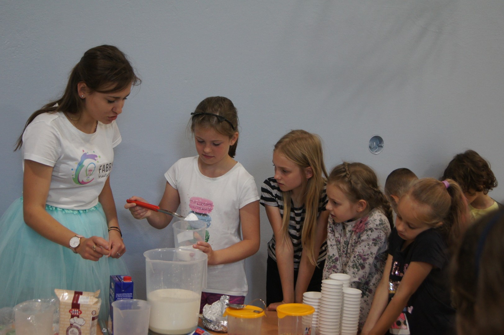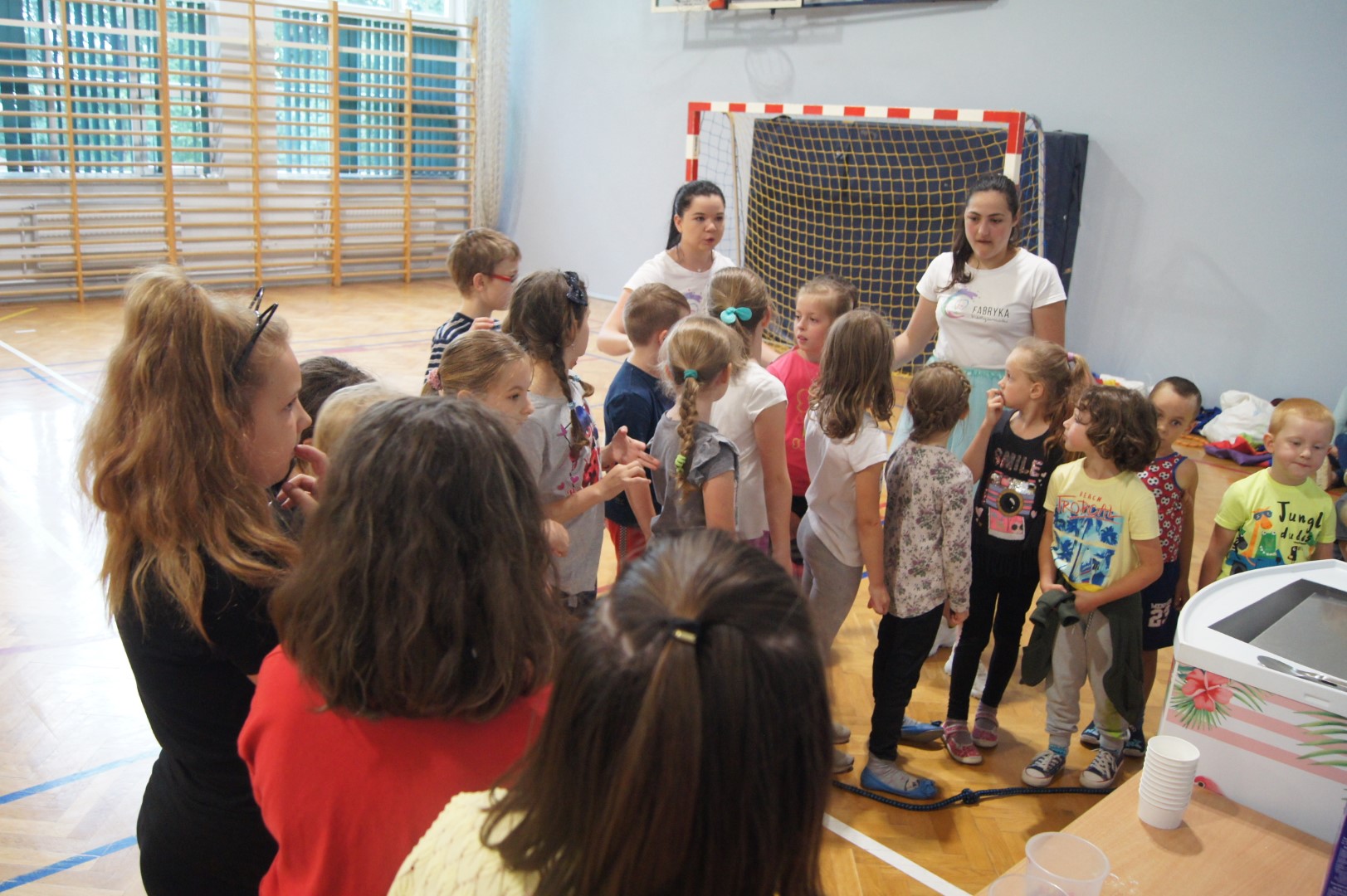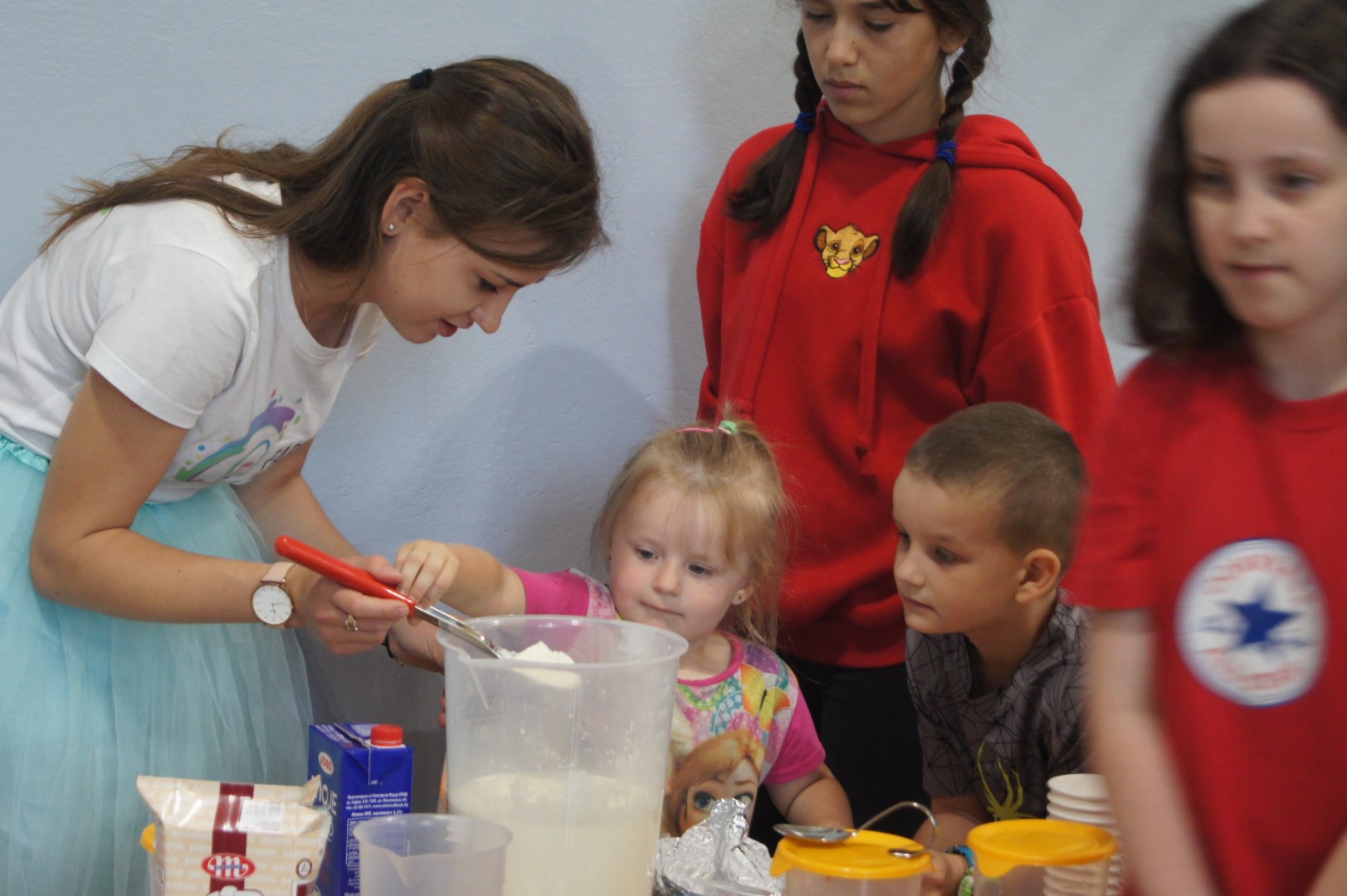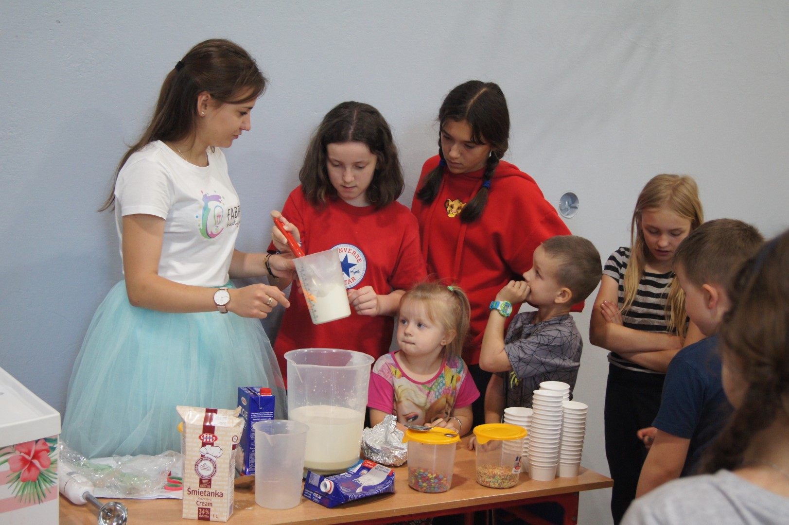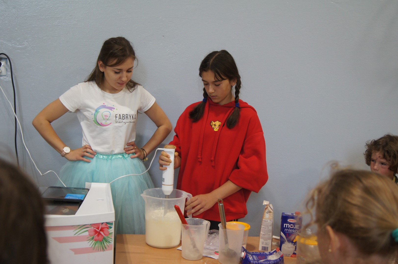 - 17.07.2020 - Gry i zabawy ruchowe dla dzieci w Hali sportowej ZSP w Tarnowcu połączone z warsztatmi tworzenia lodów.