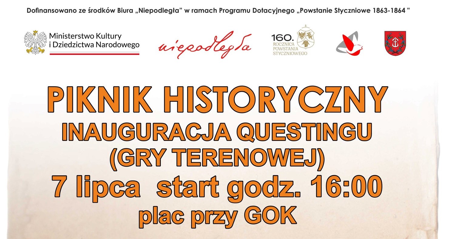 Serdecznie zapraszamy 7 lipca na Piknik Historyczny, który będzie Finałem i Podsumowaniem wielu działań, które realizowaliśmy w ramach "Projektu Powstanie Styczniowe w wielu odsłonach - PoznajeMy Naszą Historię" Dofinansowanego ze środków Biura „Niepodległa” w ramach Programu Dotacyjnego „Powstanie Styczniowe 1863-1864”.
