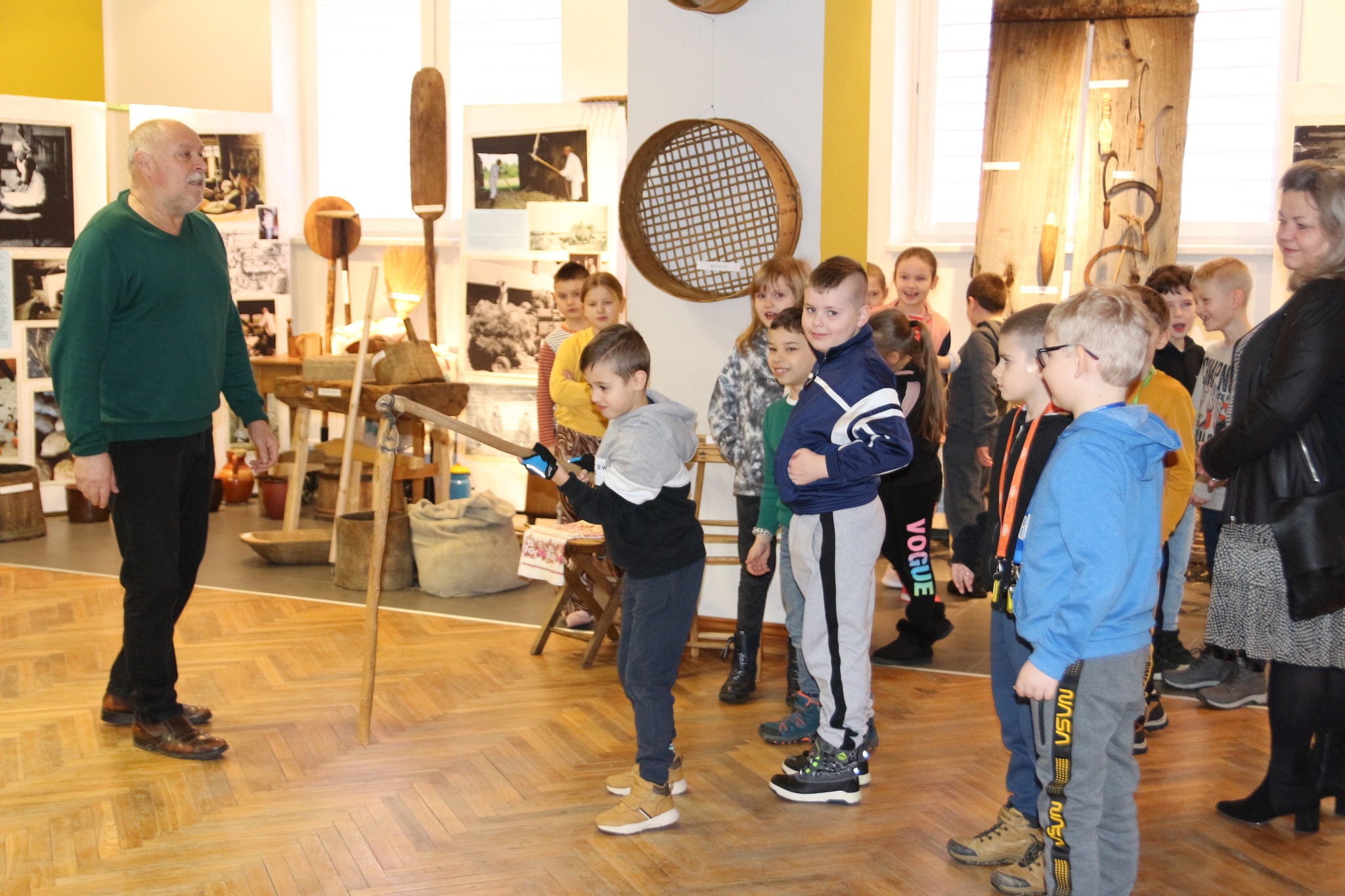 Po 3 tygodniach zakończyliśmy wystawę „Świat dawnej Wsi”. Cieszymy się bardzo, że przygotowana ekspozycja przyciągnęła do Gminnego Ośrodka Kultury dużo wycieczek szkolnych oraz mieszkańców, którzy codziennie odwiedzali nas aby zobaczyć eksponaty udostępnione przez Józefa Górkę z Potakówki. Grupy zorganizowane oprowadzał osobiście Pan Józef a najmłodszych uczestników z historią związaną z wyrobem lnu czy też wypiekiem chleba zapoznał Pan Henryk Koerner. Dziękujemy dyrektorom i nauczycielom ze szkół w Gliniku Polskim, Gliniku Nowym, Łajscach, Łubnie Szlacheckim, Łubienku, Tarnowcu i Wrocance za przyjazd z dziećmi do GOK – była to wyjątkowa okazja aby młodzież mogła zapoznać się ze zwyczajami i sprzętami używanymi na wsi w tak niedalekiej przeszłości, a które już odchodzą w zapomnienie.